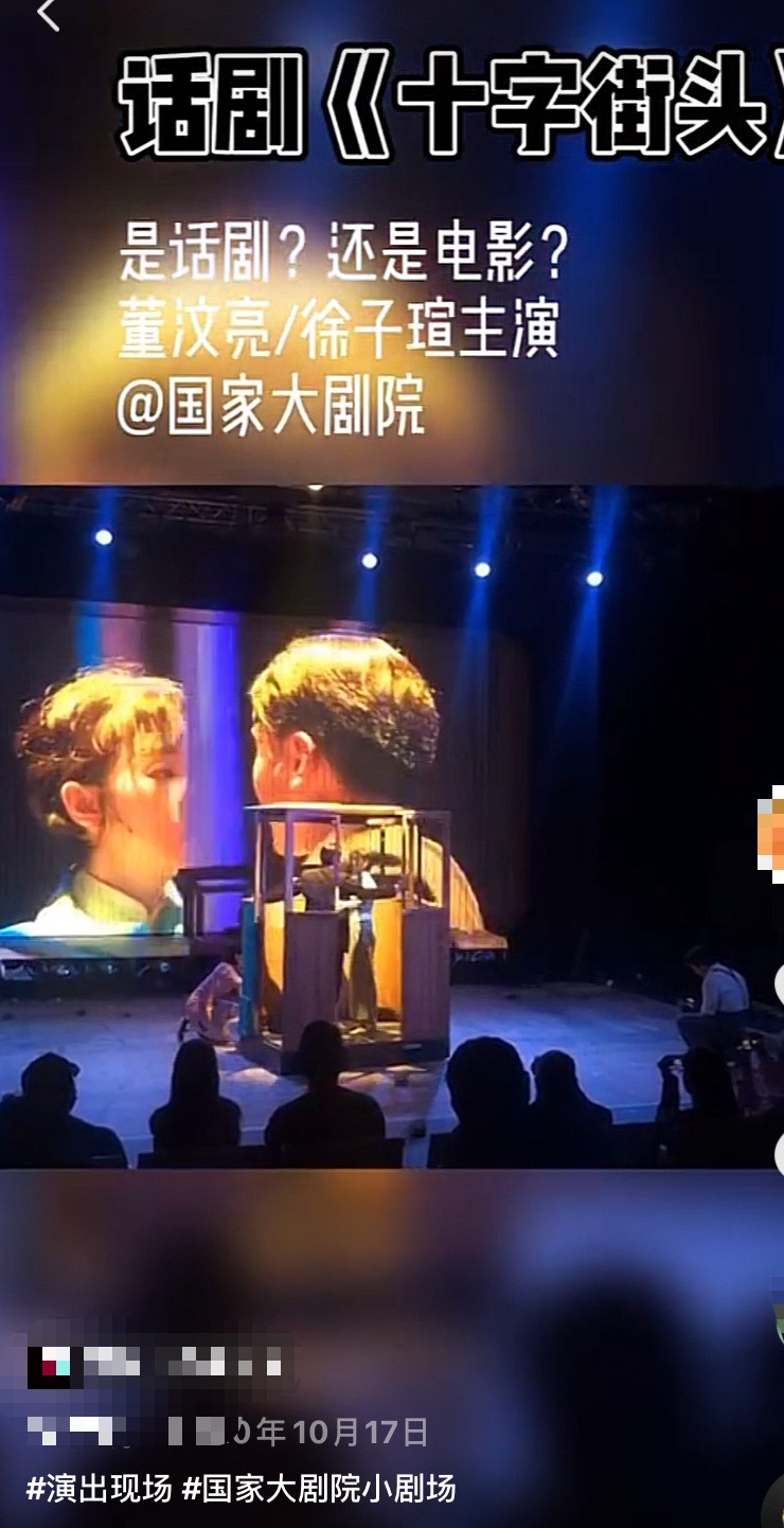有一位疑似标签为国家大剧院的工作人员(悦月),在自己的短视频账号上发了一些他们演的话剧《十字街头》的视频内容,里面特意提到,话剧的主演是徐子瑄、董汶亮,视频内容还特意艾特了国家大剧院。