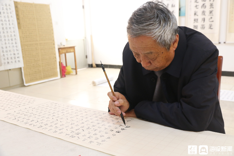 长卷的作者名叫韩其河,今年69岁,是利津县一名退休干部。韩其河已有34年党龄,他从小酷爱书法,工作期间没时间发展爱好,退休后却一直坚持在利津县老年大学书法班学习。谈及手抄党章,韩其河说:“最近正在开展党史学习教育,正好自己有书法这方面特长,就把两者结合起来了,我希望用这种方式为党的百年华诞送上一份祝福。”