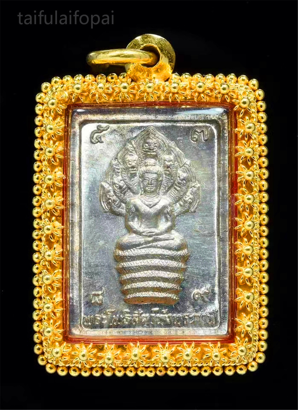 阿赞坤潘 2532年七龙泽渡金“伦端滴”译为好运,泽度金阿赞坤潘是近代制作加持泽镀金里最好的师傅,据说起因为阿赞坤潘梦境中收到七龙佛指引,故法相偏重于七龙佛(七龙佛及泽度金天神法相虽然相似,其实依然区别不晓,大家可以关注法相两点特征:1,背后护法神龙法相,七头龙还是独龙。2,腿部造型禅坐,及右腿外侧)。