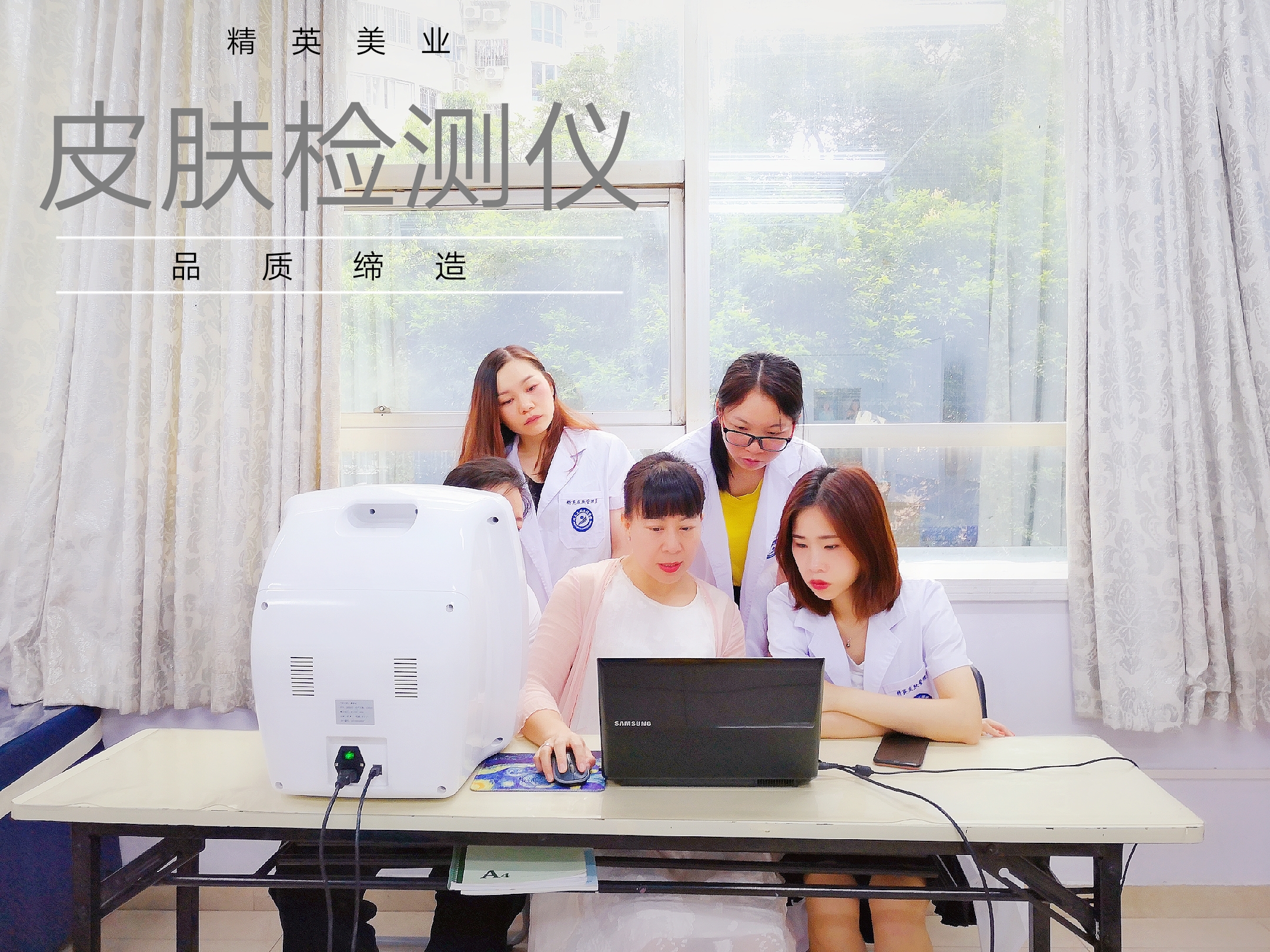 通过脸部皮肤检测仪(俗称魔镜仪),进行脸部皮肤检测,检测皮肤的色斑、皱纹、化学残留等问题。
