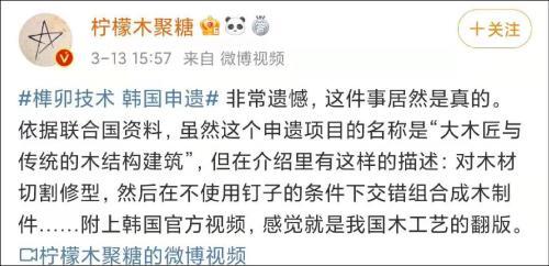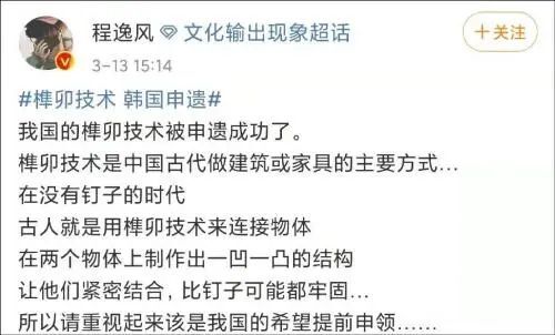 “咱中国的榫卯技术,被韩国成功申请非遗了?