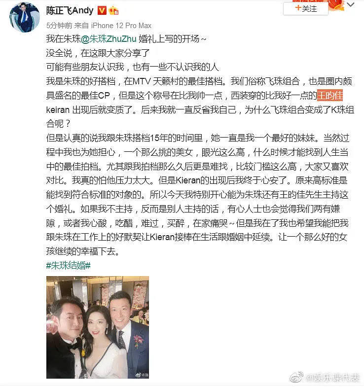据主持人陈正飞的分享,新郎是一名圈外人士,名叫王佳昀。
