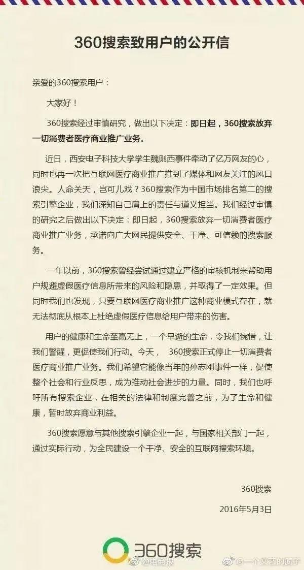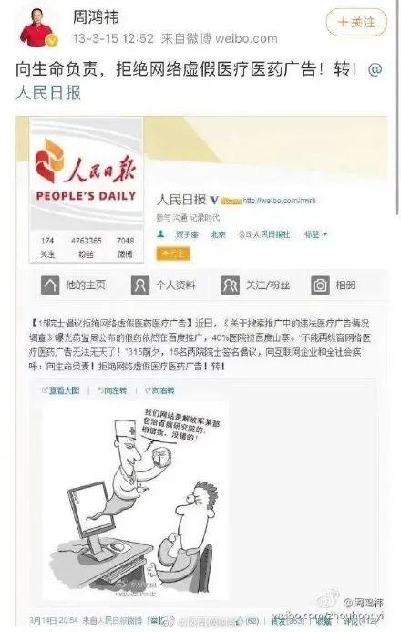 360集团CEO在13年就强调,拒绝网络虚假医疗医药广告。