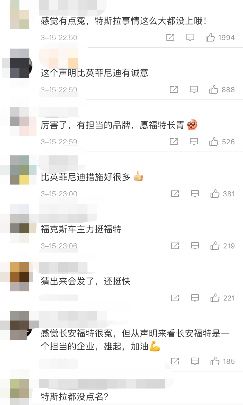 还有一个错误点,公关讲究合纵连横,需要专业的媒体做背书,不是一昧地水军控评就能达到效果,我看了这些品牌的评论区,基本上都有水军控评,比如福特的评论区就清一色好评: