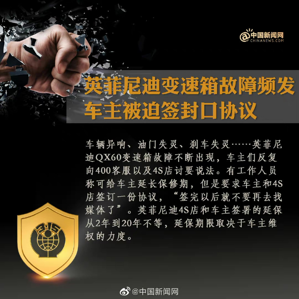 英菲尼迪自己变速箱出现故障,上门维权,维权可以,你先签不平等协议?