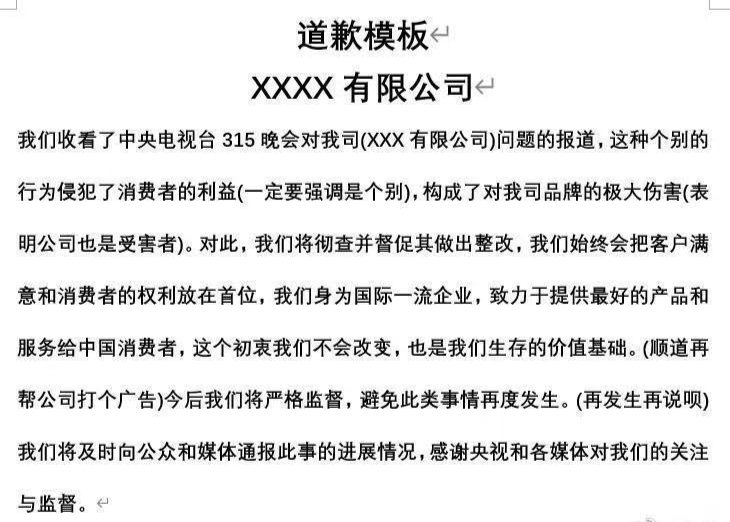 原因在太统一了,感觉就是按照网上流传的公关模板,改了下主语。