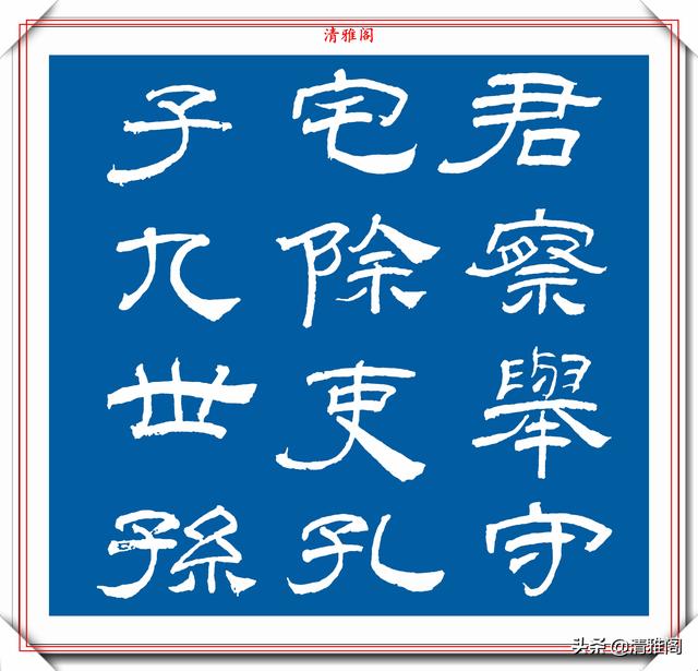隶不学曹全,楷不学九成,是说隶书曹全碑字的神韵不好把握,笔画精润不好学,所以才不学。同样九成宫,由于结构险绝,字形瘦挺,不容易掌握,所以才有了楷不学九成的说法。恰好我就是楷书练九成宫,隶书曹全,写欧楷只是之前的一点基础,习惯了欧楷的笔画,颜楷也好,但不很欣赏颜体的笔画特点,柳赵不说了,没打算练。写曹全碑就是感觉它的线条的柔美,还有就是别人推荐说隶书一开始就最好写曹全。