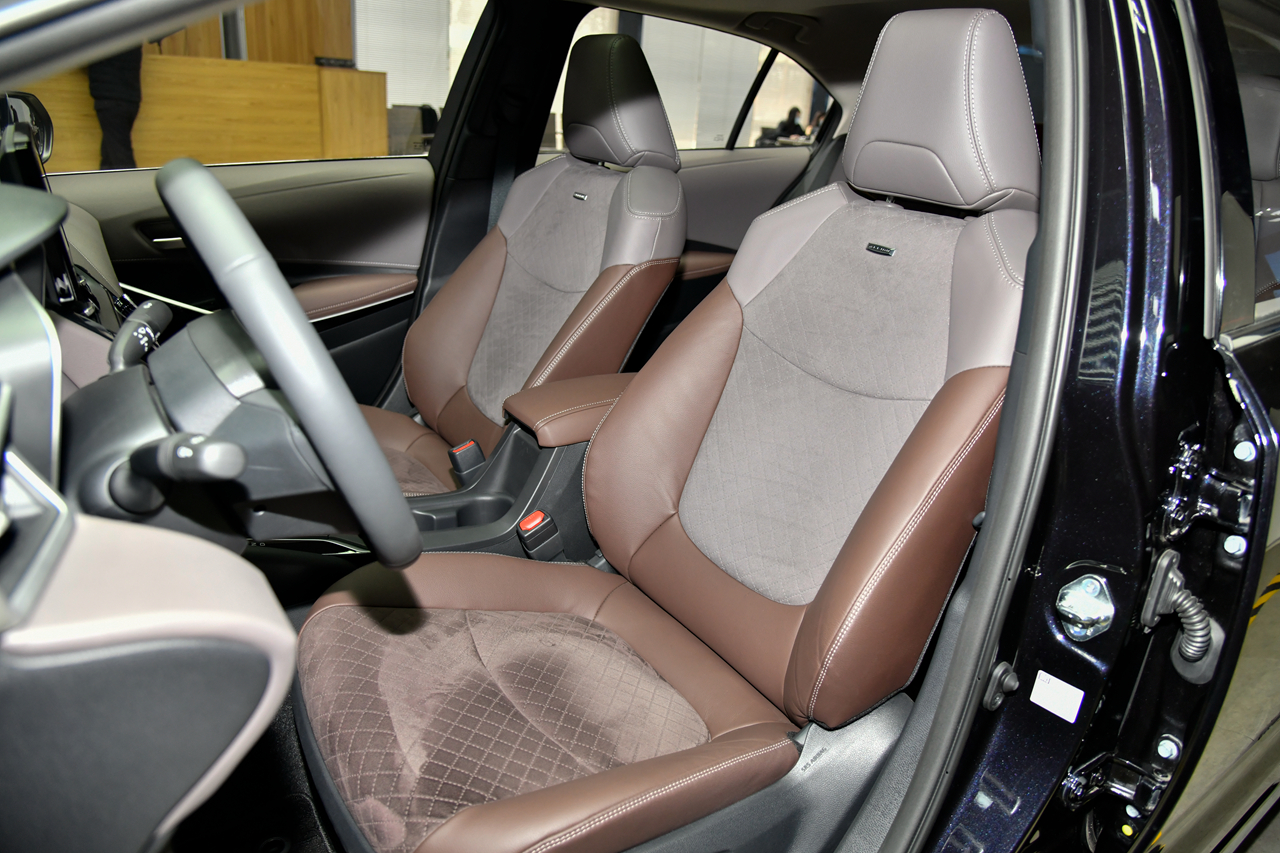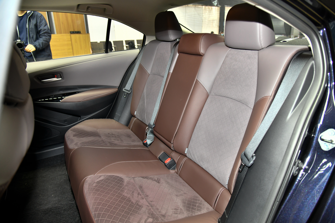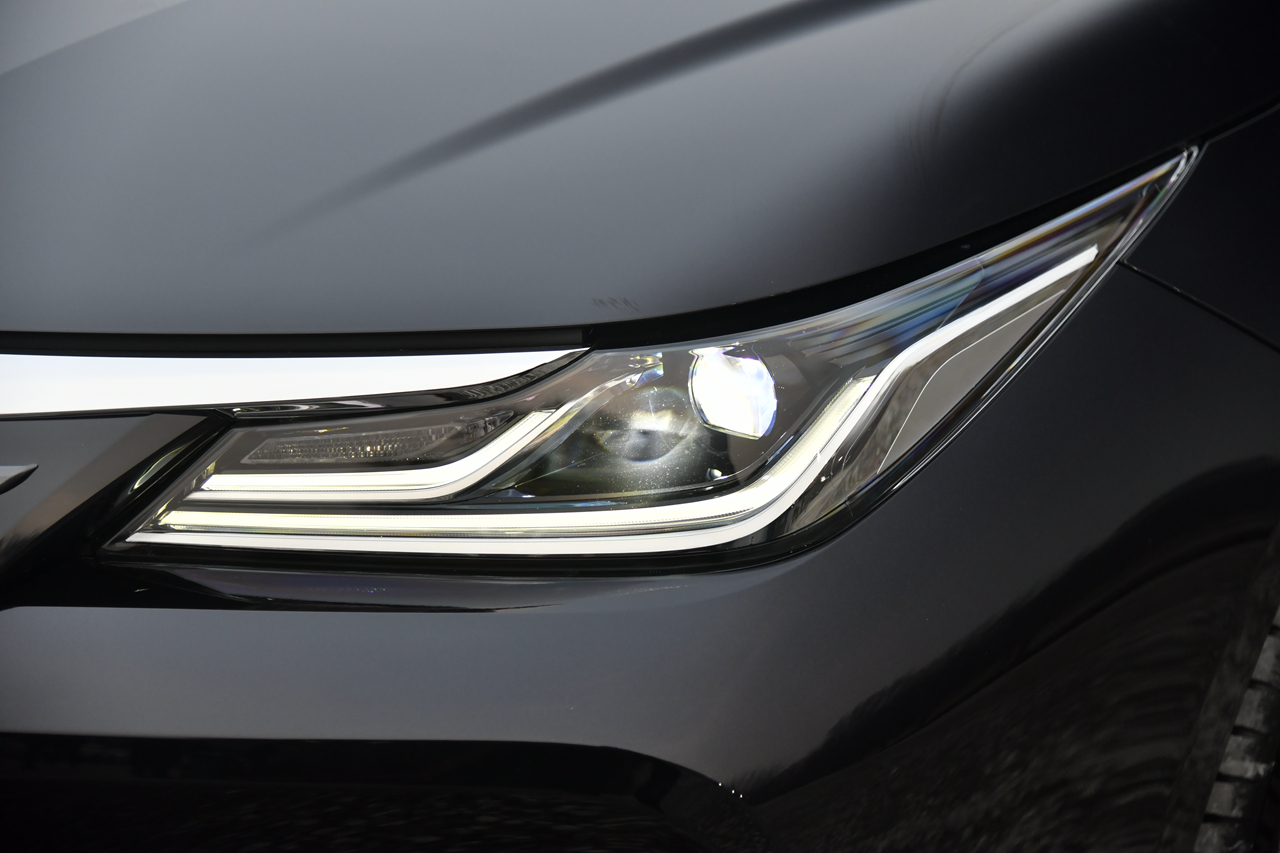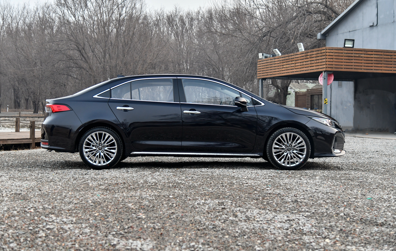 大灯几乎与卡罗拉一致,灯角向后延伸了很长距离,造型细长锋利。内嵌的L形日间行车灯在开启时有很高的识别度,而雾灯则置于保险杠拐角下方,在能见度较低的环境下会起到更好的警示作用。