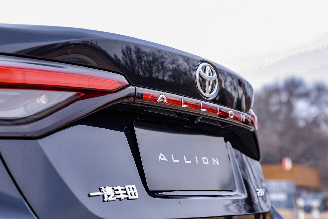 车尾设计集合了卡罗拉和亚洲龙的特点,整体造型与卡罗拉一致,贯穿式尾灯借鉴了亚洲龙,在中央位置设有ALLION字样的铭牌,在时尚动感的基础上又增添了一丝科技氛围。