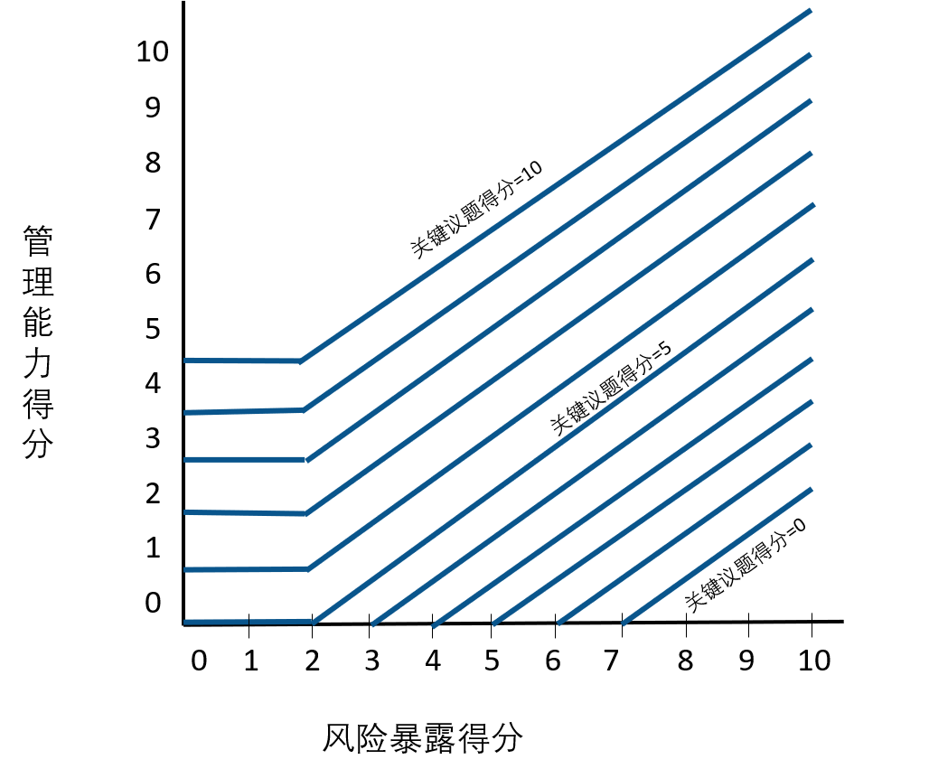 而当公司面临低风险暴露(2分)而具备最高风险管理能力(5分)时,最终风险项评分为满分10分。
