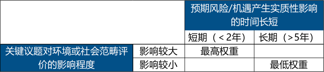 在不同类型的子行业中,MSCI为每项关键议题分配了“高”“中”或“低”的影响程度,以及“短期”“中期”“长期”的影响时间。