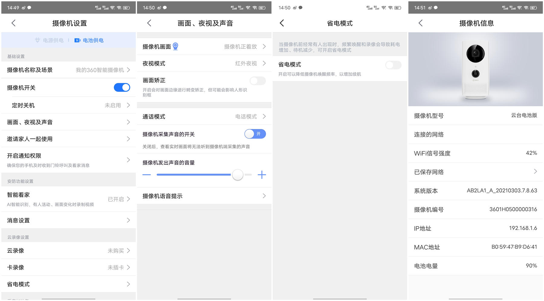 这款摄像机除了24小时录制之外,还有一个省电模式,结合PIR传感器,可以进行有人/动物出现唤醒摄像机工作,一键省电模式;低电量提醒,长续航大容量锂电池配合系统级省电优化,我本想做一个系统测试,从2月27日开始,到3月6日,8天的时间,查看电量还有90%,这个测试果断的就放弃了...