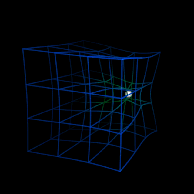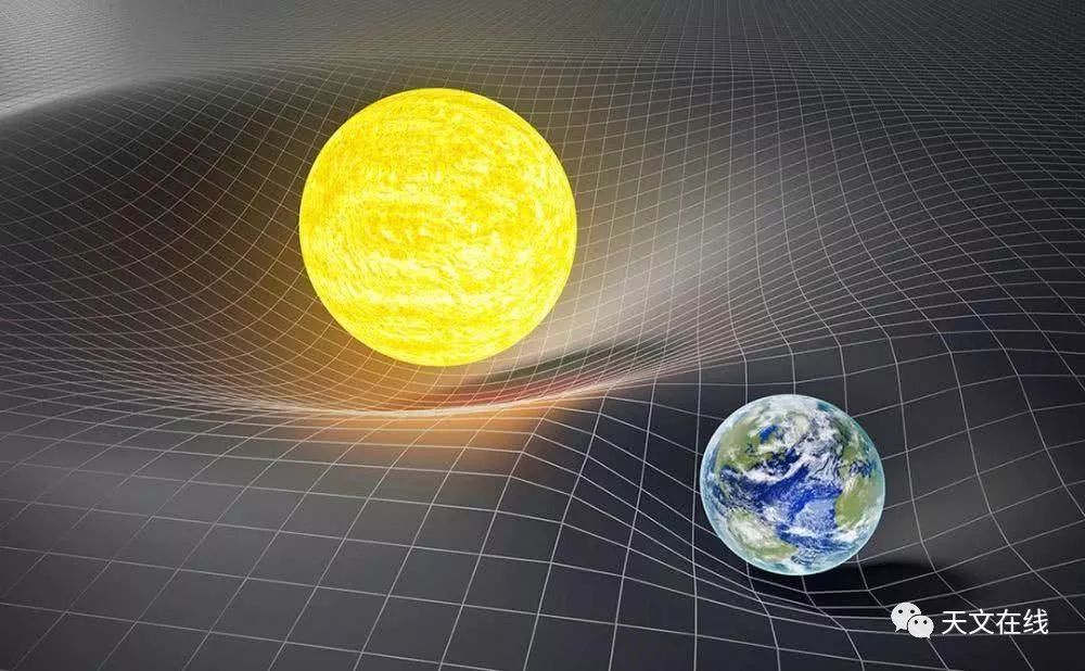 打个比方,你可以想象一下,有两条船从赤道的不同点都向北方航行,尽管两条船都不向对方形势,但是就好像有种神秘的力量在拉扯着他们接近彼此,直到最终在北极相遇。我们当然知道在地球弯曲的表面上“最可能的直线”是一个圆圈。根据广义相对论,,引力场中的物体在弯曲的时空中同样以“最可能的直线”(专业的叫法为“测地线”)运动,而他们的曲率又被重量或者能量所决定。用约翰·惠勒的话说:“时空告诉物质如何运动;物质告诉时空如何弯曲。”