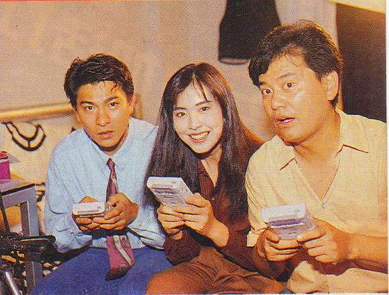 这个不算少见,电影《摩登如来神掌》的片场,王祖贤和刘德华、陈百祥一起玩游戏机。谁能告诉我下面这两位明星是谁?