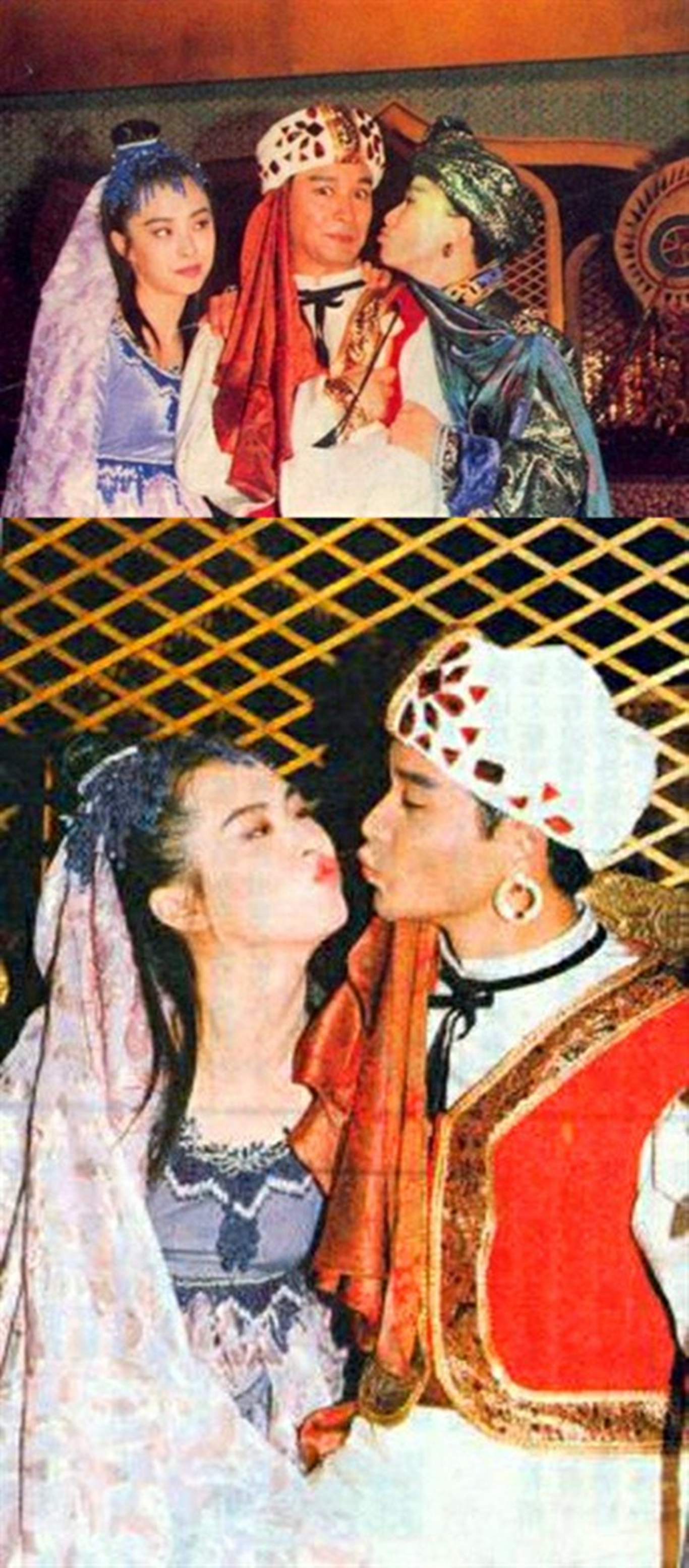 《东成西就》电影宣传时,和王祖贤假装亲亲,感觉郎才女貌配一脸呢哈哈
