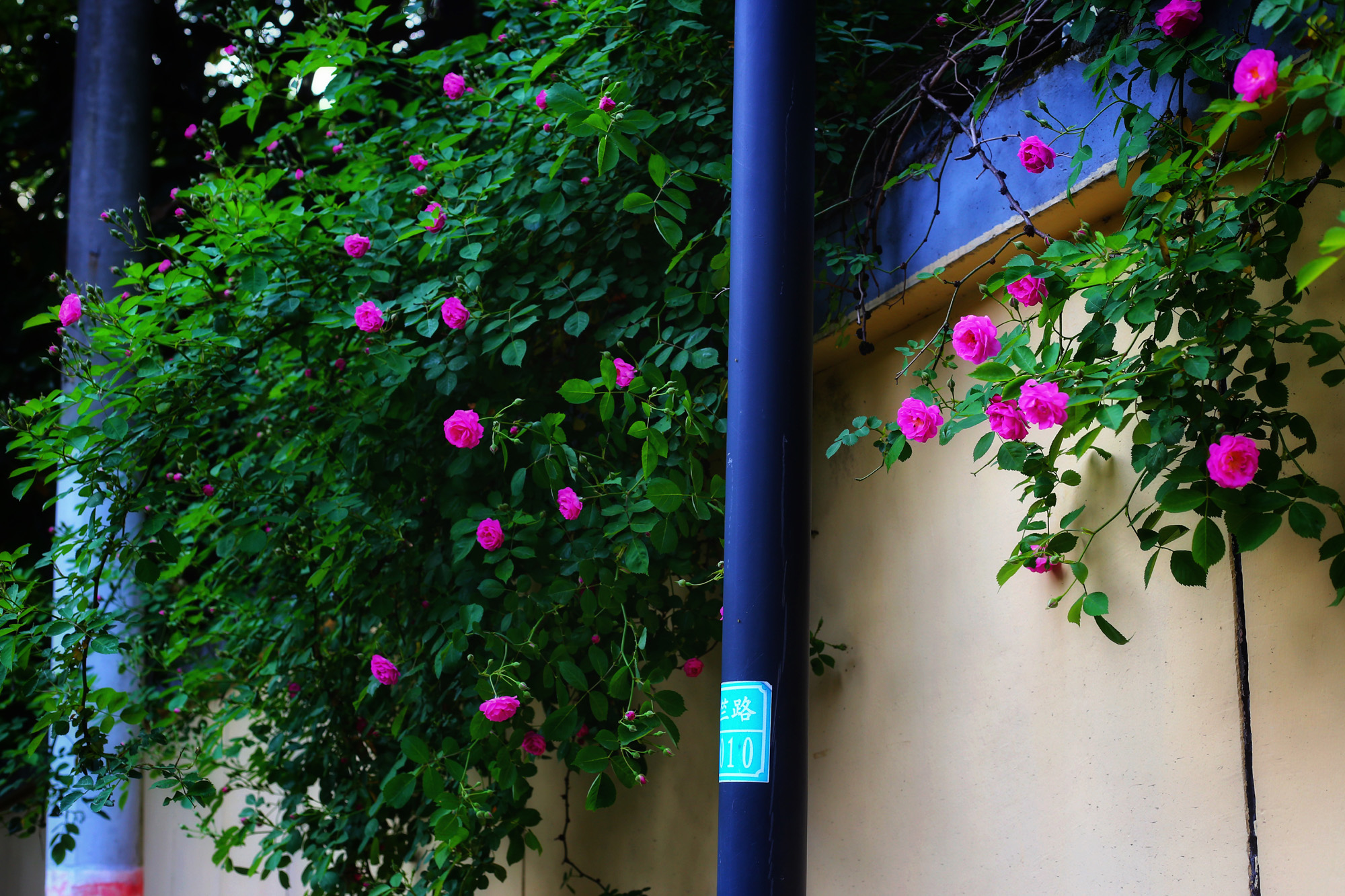 我最喜欢春天里的蔷薇,淅淅沥沥的雨水将其淋湿,从院门紧闭的民国建筑里探出头,惊觉南京最娇艳的蔷薇都聚集在这条路上了吧。
