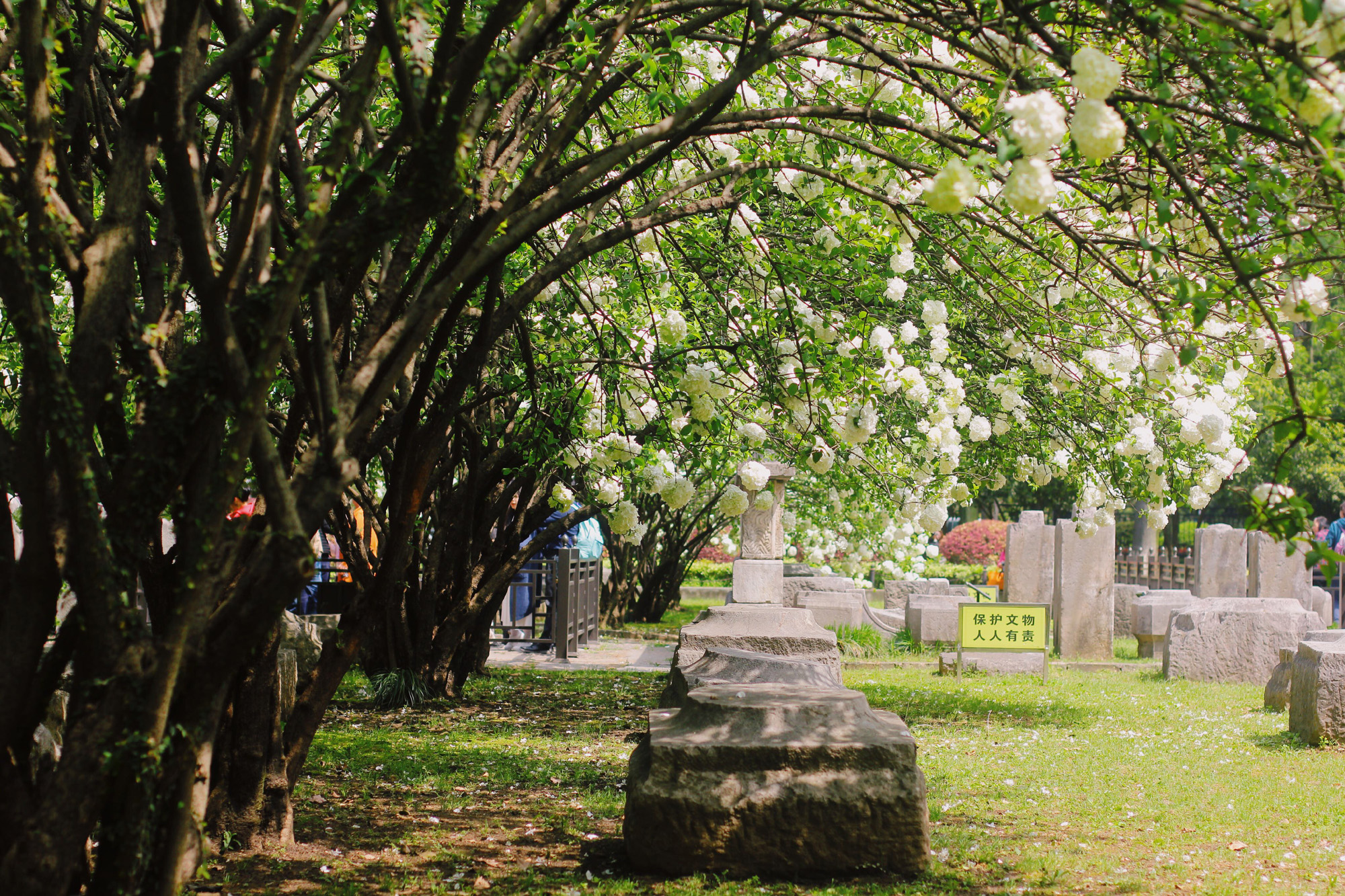 午朝门春夏交替间开放的木绣球花是南京的一大盛景,清丽而雅致,印象中这里只有白色或者极淡的绿色,与古建筑的气质最相配。此时顺着午朝门走一走,有关世俗的焦灼感总会消失殆尽,不经意间沉醉在木绣球花的情调中。