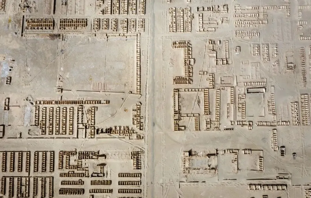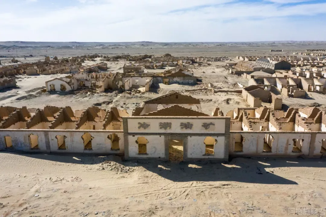 整齐划一的废墟,从废墟规模之大,可以遥想当年的辉煌。在废墟原址的不远处,还有一座“现代化”的冷湖小镇。镇里设施齐全,大型体育馆,大型商场,巨大的政府办公大楼,都粉刷维护得崭新。街道干净整洁,几乎每隔10米就有一个监控摄像头。密集的道路绿化在荒漠中格外扎眼。