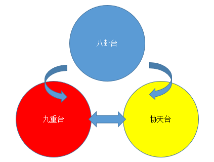 此外,吴文昭、黎文忠等创立者对封建等级制度和西方政体十分熟悉,因此从组织机构来看,高台教带有浓厚的政治色彩,引入了西方“三权分立”的理念,很像是一个西方国家的缩影:高台教中的“三台”代表三个最高的权限,分别是:八卦台代表立法,协天台代表司法、九重台代表行政。