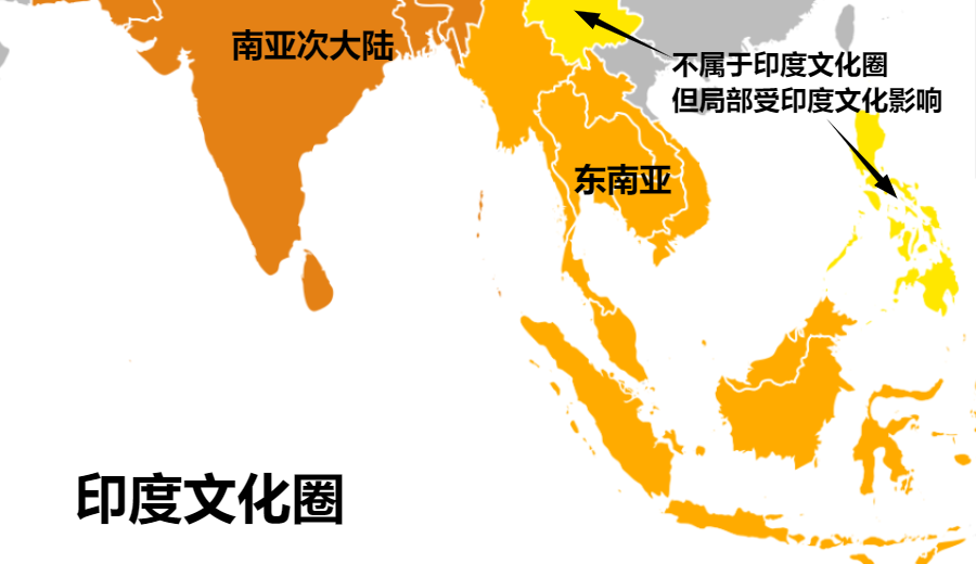 ▲印度文化圈,越南北部是中南半岛唯一的例外