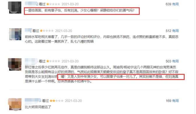 另外,刘涛和周渝民的搭配也明显不够和谐,虽然周渝民也过了鲜肉期,但男演员的花期都很长,周渝民即便有些沧桑感,也跟剧情非常相符,并无异样感,只是刘涛跟周渝民的这段亲密戏,看得人无力吐槽,辣眼睛。不少网友都留言,称这对男女主毫无CP感,刘涛的少女人设不忍看。