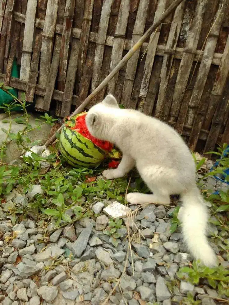 雪狐是杂食动物,西瓜、果皮、狗粮、鱼虾、火腿肠甚至仙人掌都吃。此外,它还特别护食,一打扰它吃饭,它就咬人。