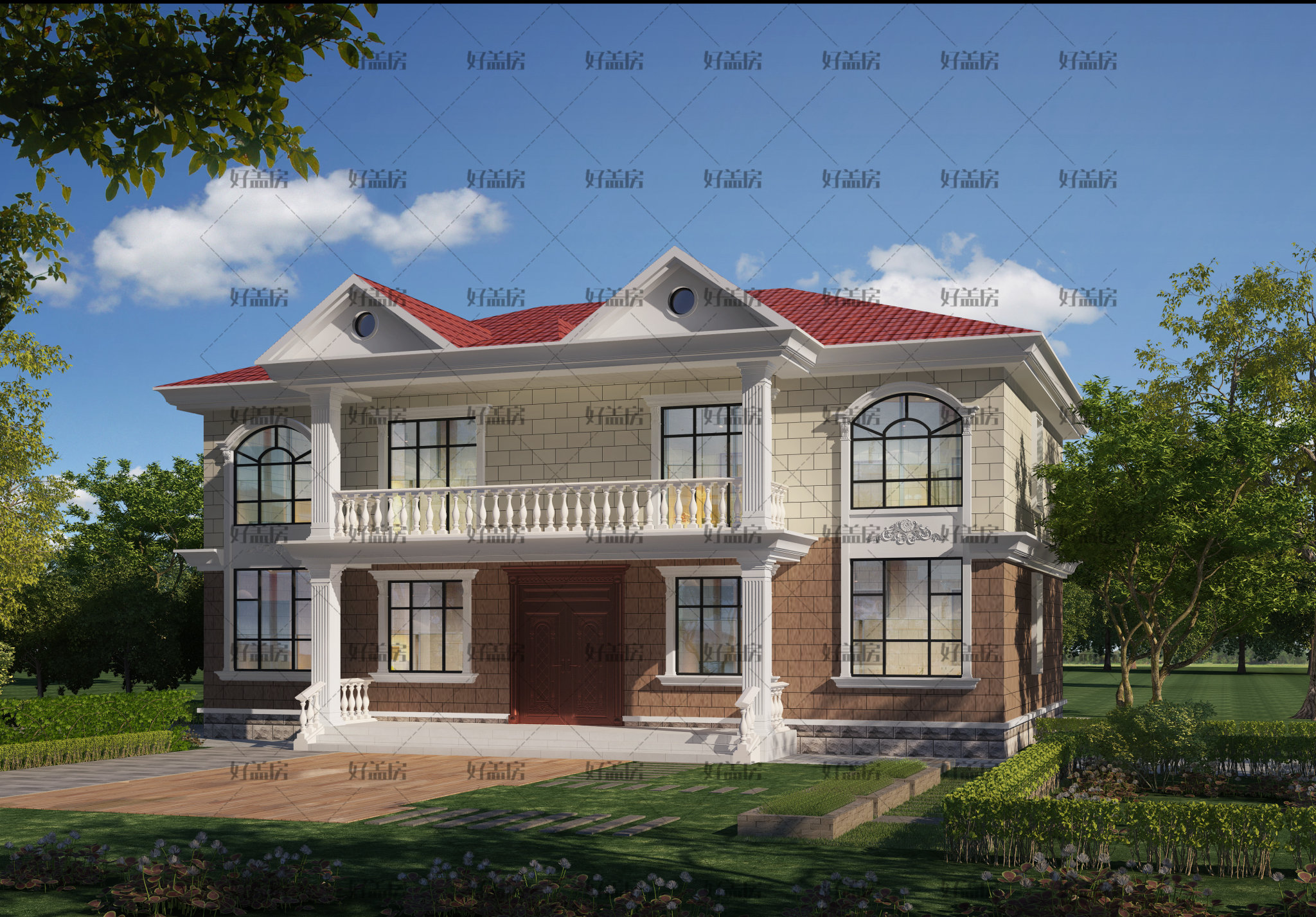 现在,整个农村自建房屋的设计,大多都是简单的欧式斜屋顶设计,既美观又实用。 如今的农村人基本上不需要在屋顶上晒东西,所以今天的小化妆给大家带来一套两层斜屋顶别墅,这绝对是新农村的标准配置。