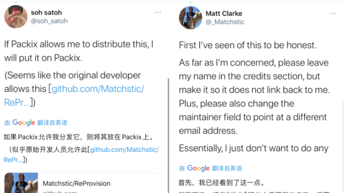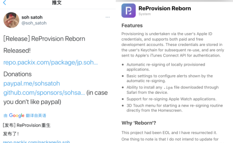 随后!在3月6日 soh satoh 在推特发文称,在 iOS 14 运行 ReProvision 很容易,接着被原作者看到了,并且很乐意授权给他。