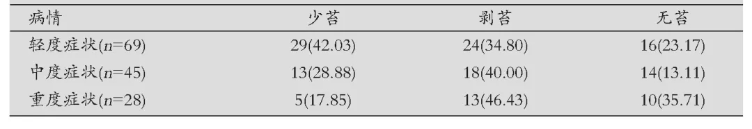 不同病情程度患者的舌苔表现
