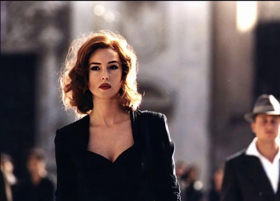 在「西西里的美丽传说」当中,“玛琳娜”穿着粉色的法式风衣,披着微卷的头发,一脸的妩媚,凭借这个角色,莫妮卡·贝鲁奇突破了意大利,从意大利女神变成了地球球花,那一年,她把美艳演绎到了极致。