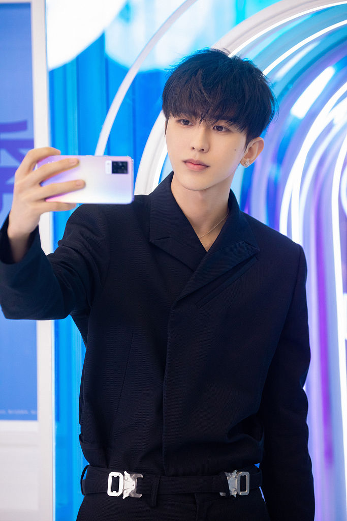2021年3月21日,杭州,蔡徐坤参加 vivo S9见面会活动现场花絮图曝光。蔡徐坤现场玩自拍,颜值超高。