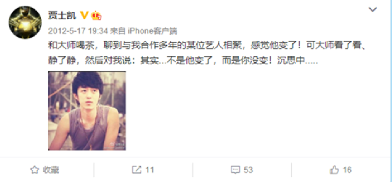 那么,你觉得从经纪人跃升为影视公司老板,贾士凯靠的是“会做人”吗?