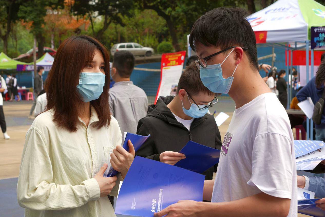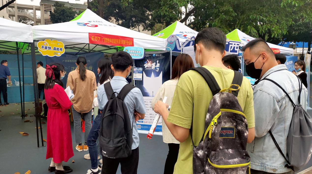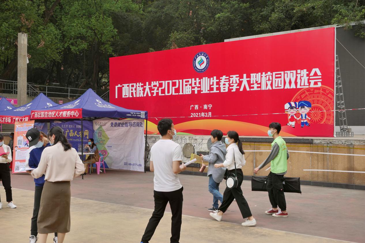 ▲广西民族大学2021届毕业生春季大型校园双选会现场