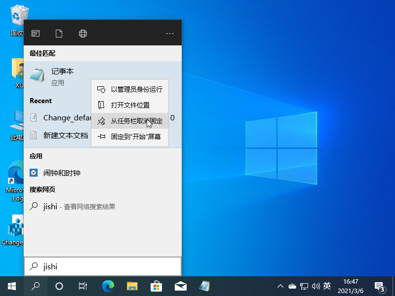 2.在“搜索”记事本选项中,您还可以选择右键单击以保护快捷方式到任务栏,因此您可以轻松使用鼠标点击以打开。同样,您还可以将其固定到“开始”屏幕上。