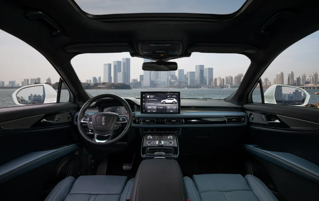 回到车内,之前不管是MKX还是进口版本的航海家,大家“诟病”最多的就是比较老旧的内饰和用起来看起来都不是很好的中控键竖向排列的换挡。而新一代航海家采用现在林肯家族最新的“地平线原则”设计,不管是在之前的冒险家还是飞行家中都得到了非常高的好评度。除了在内饰设计语言中和两位“同胞兄弟”相得益彰,除了那个十分显眼的12.8英寸液晶显示屏,新一代林肯航海家在内饰配色上还首次引入了“浅湾蓝”的颜色,也是丰富了消费者多样选择。