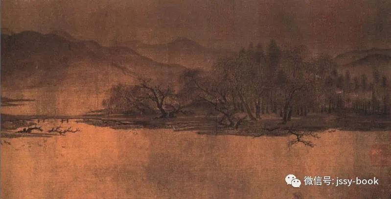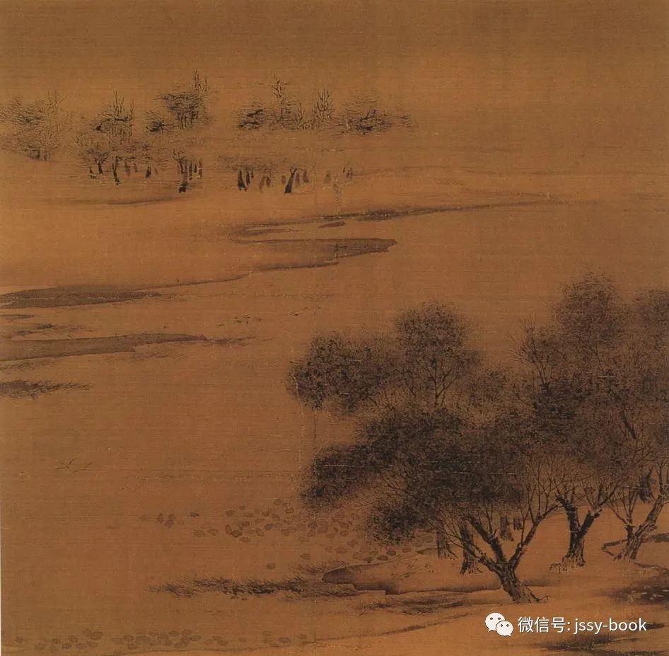 沙汀丛树图 ,绢本,设色,纵:24厘米,横:25厘米,辽宁省博物馆藏。画工小景,烟雨芦雁,寒汀远渚,沈括歌其为“小景惠崇烟漠漠”,实为南方山水画派之支流。此图原是《唐宋元集绘册》中的一幅,梁清标定为惠崇所作。表现早春季节郊野沿河的景色。河塘里水草浮在水面,林木烟笼雾锁,溪水明净,具有抒情的诗意。