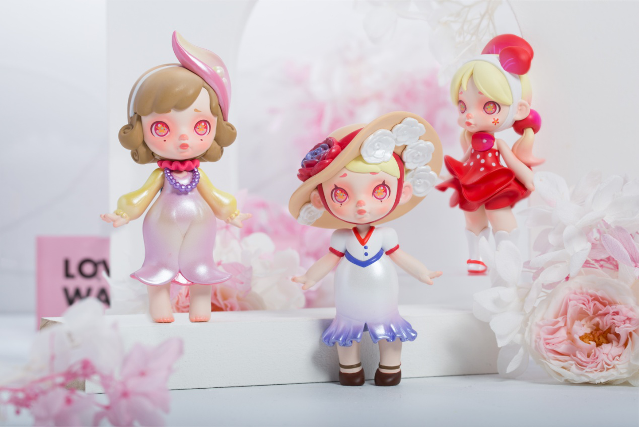 一个系列盲盒的诞生,从设计师手稿到最终成品,快则半年,慢则近一年。以Laura花卉时装系列为例,在大半年的制作过程中,花卉时装系列形象的最终呈现及还原度,将极大地影响设计师、工艺师的幸福指数。
