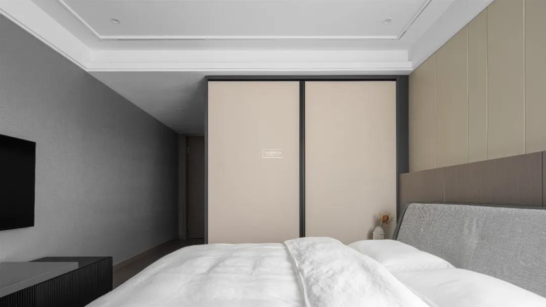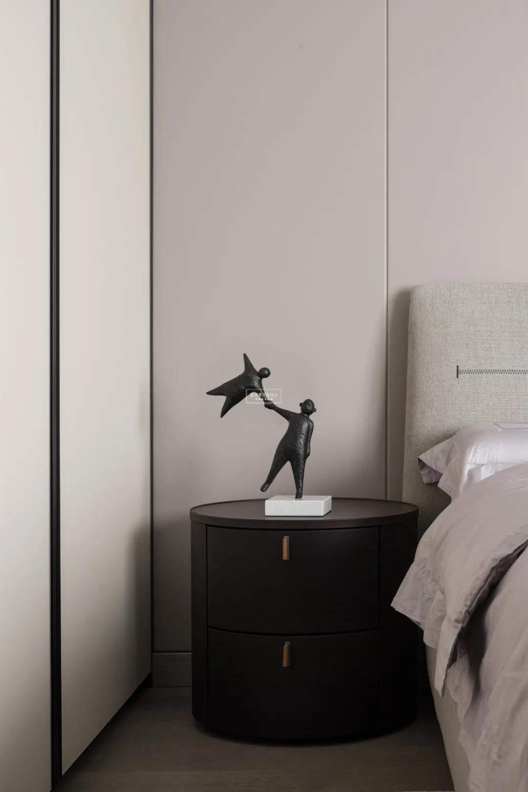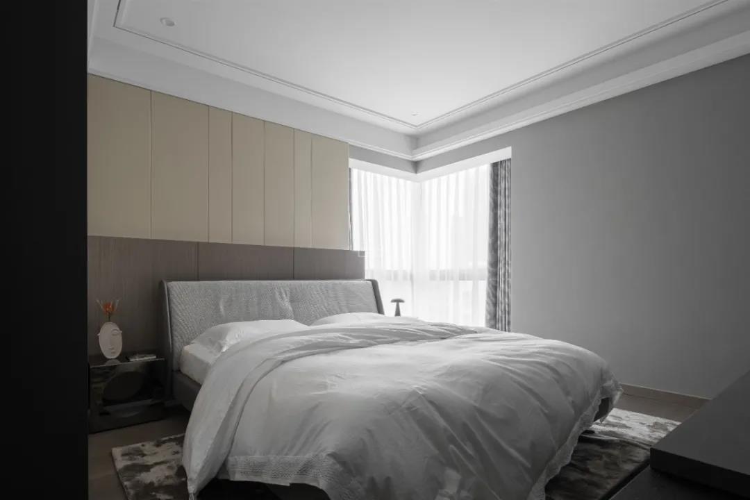 卧室的设计简约且平静,在卧室空间,主人可以更好的感受光影的变化,感受四季的轮回,回归生活的本真。