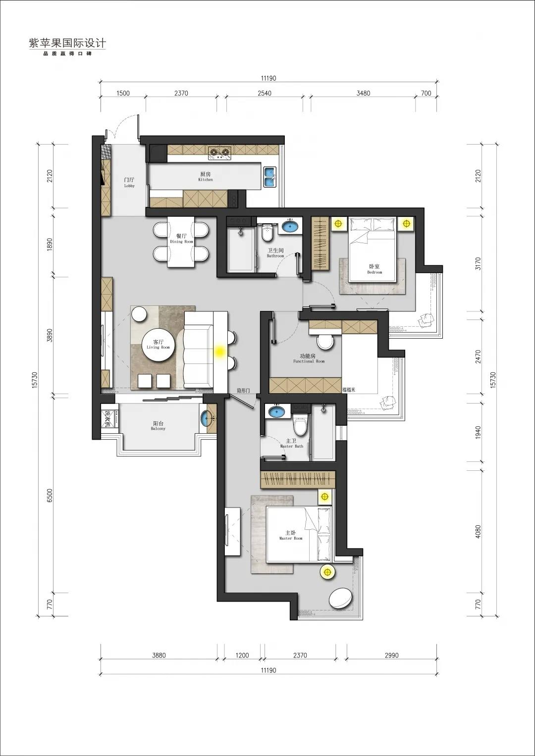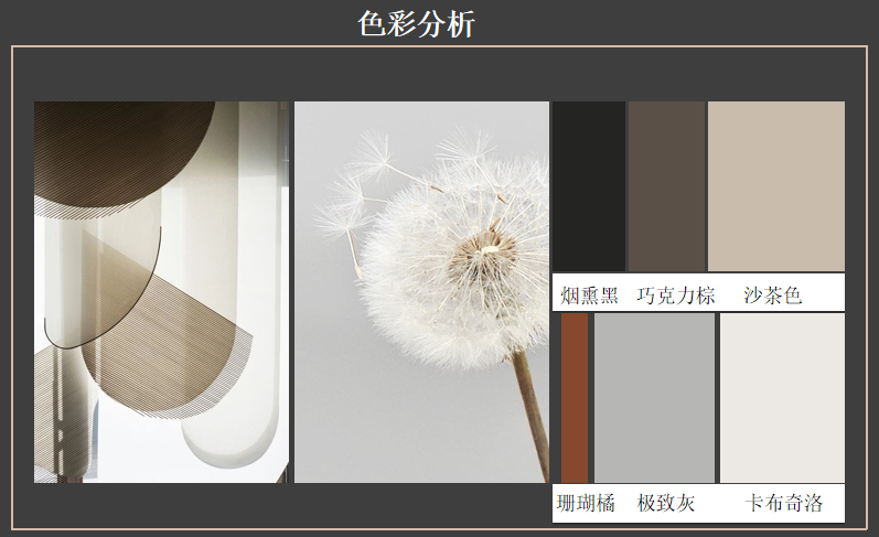 设计师以灰色、棕色为画布背景,大色块铺好底,并不急切的去期待效果,慢慢的将材质与颜色点缀添加,空间的层次感就此呈现而渐趋于完整。