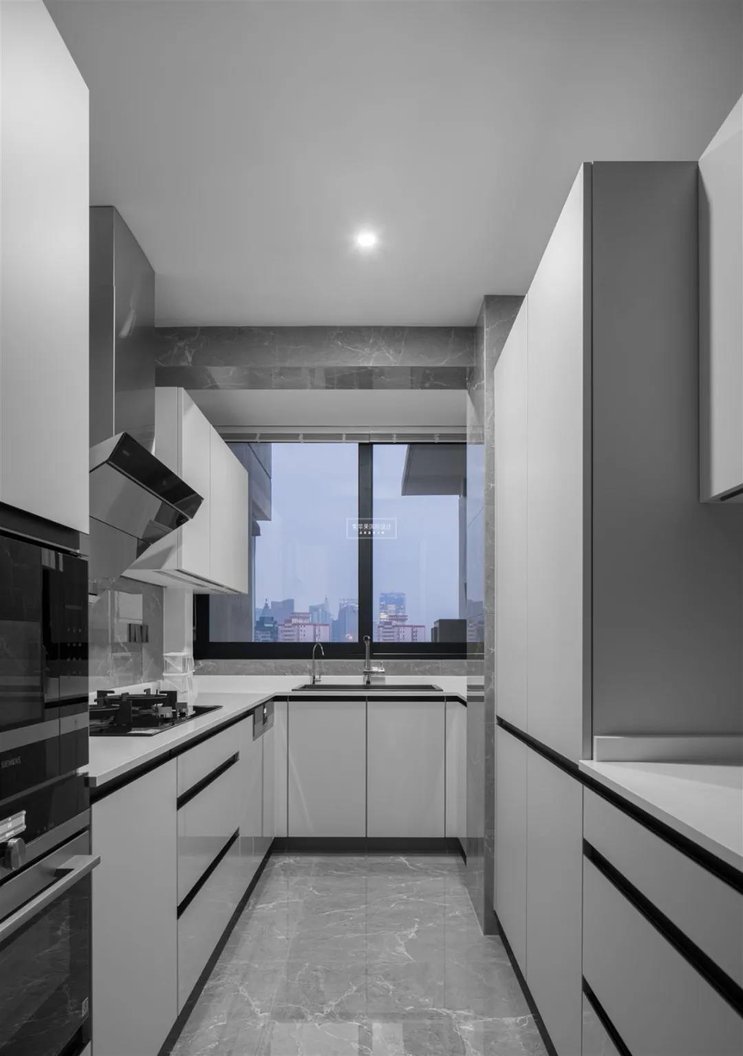 最纯净的白色用精巧的黑色线条细细勾勒,赋予餐厨空间精巧与细腻。