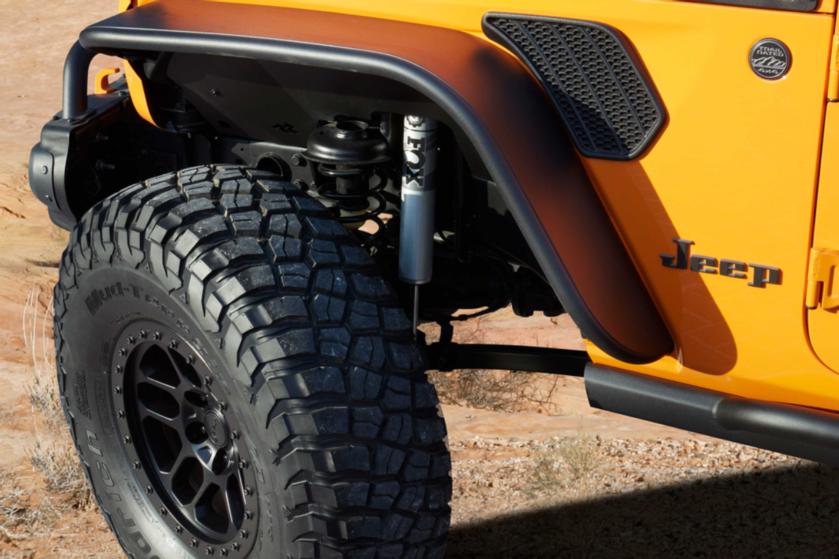 外观方面,新车采用了一款特殊的橙色车漆,车名的来源就与这款车漆有密切关系。新车的格栅饰板、前后保险杠、绞盘、黑色轮眉等均为改装件,改装的减振器使车辆的离地间隙又多增加了51mm,配备的37英寸BF Goodrich泥浆轮胎更是野性十足。