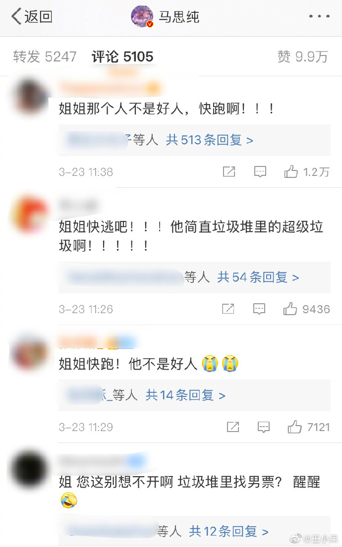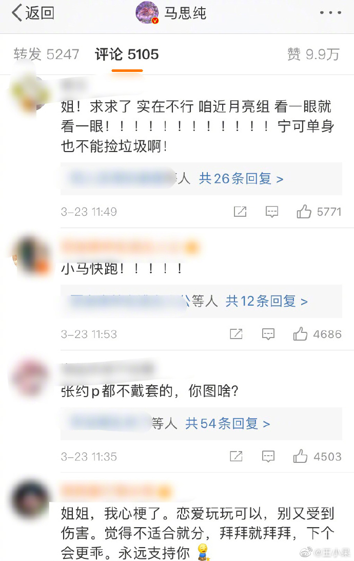 现在马思纯微博评论区都是劝她快跑的,还有网友还去欧豪评论区求他俩复合。