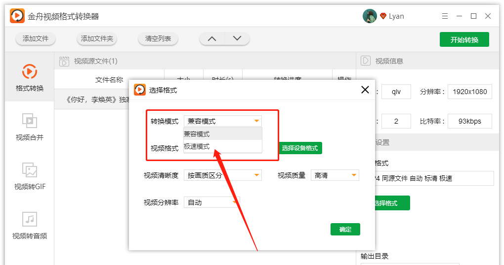 第四步、软件的转换模式共分为以下两种,一般情况下都是兼容模式;技术模式仅支持部分格式,且不能自定义设置分辨率和画质;