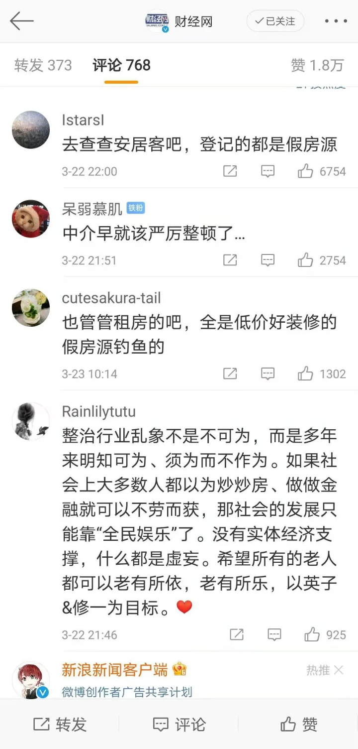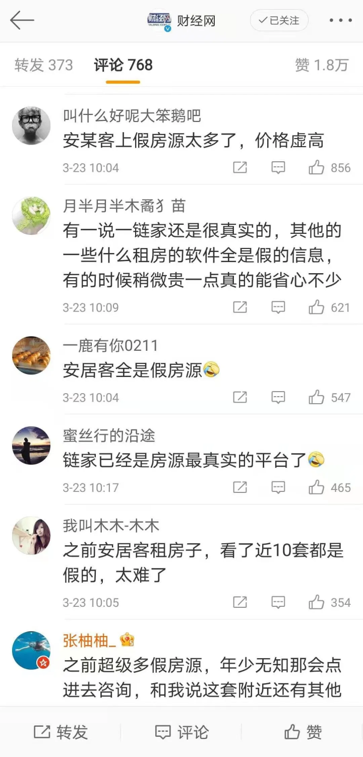 评论第一条获赞近7000,评论消息为:“去查查安居客吧,登记的都是假房源。”以下还有诸如: