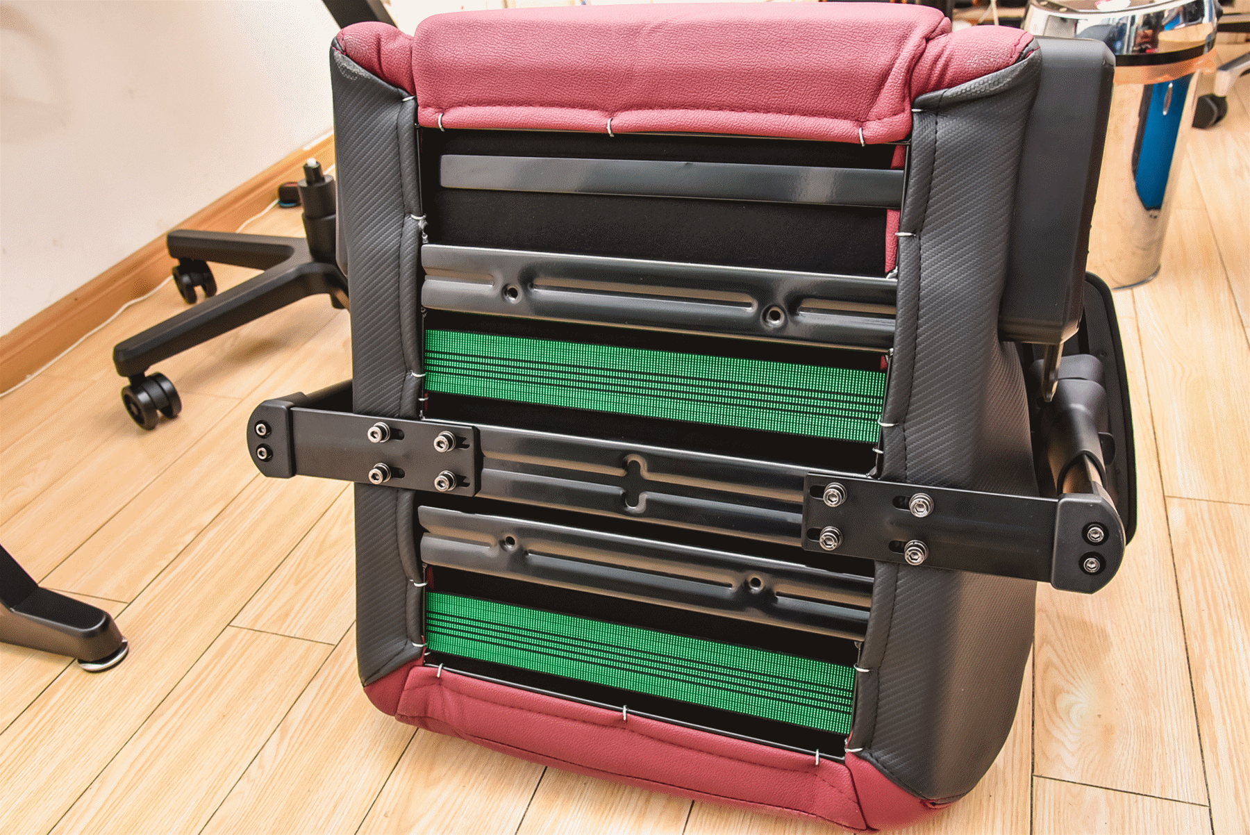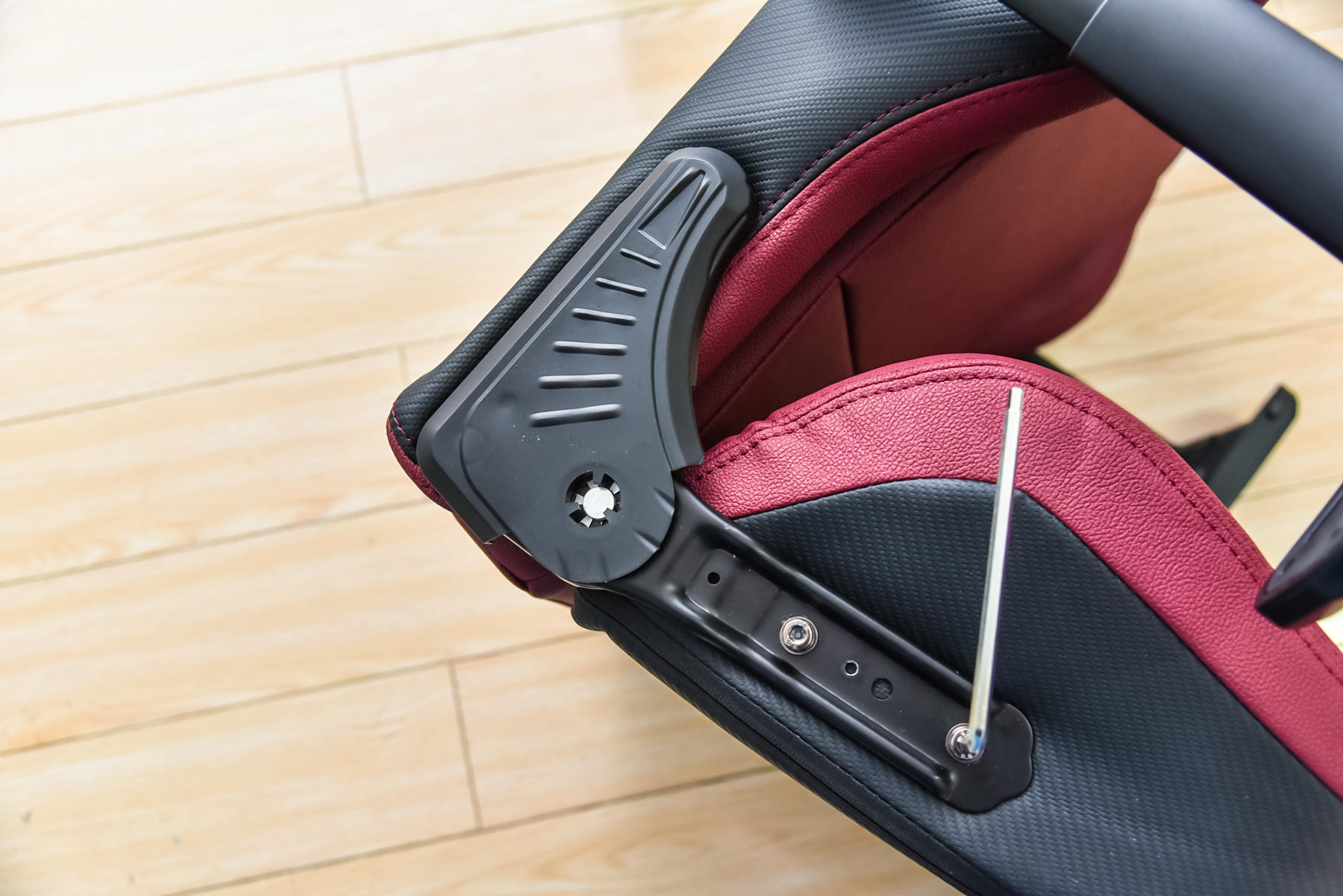 准备安装靠背的时候,记得要把这里的左右四颗螺丝全部取下哦。