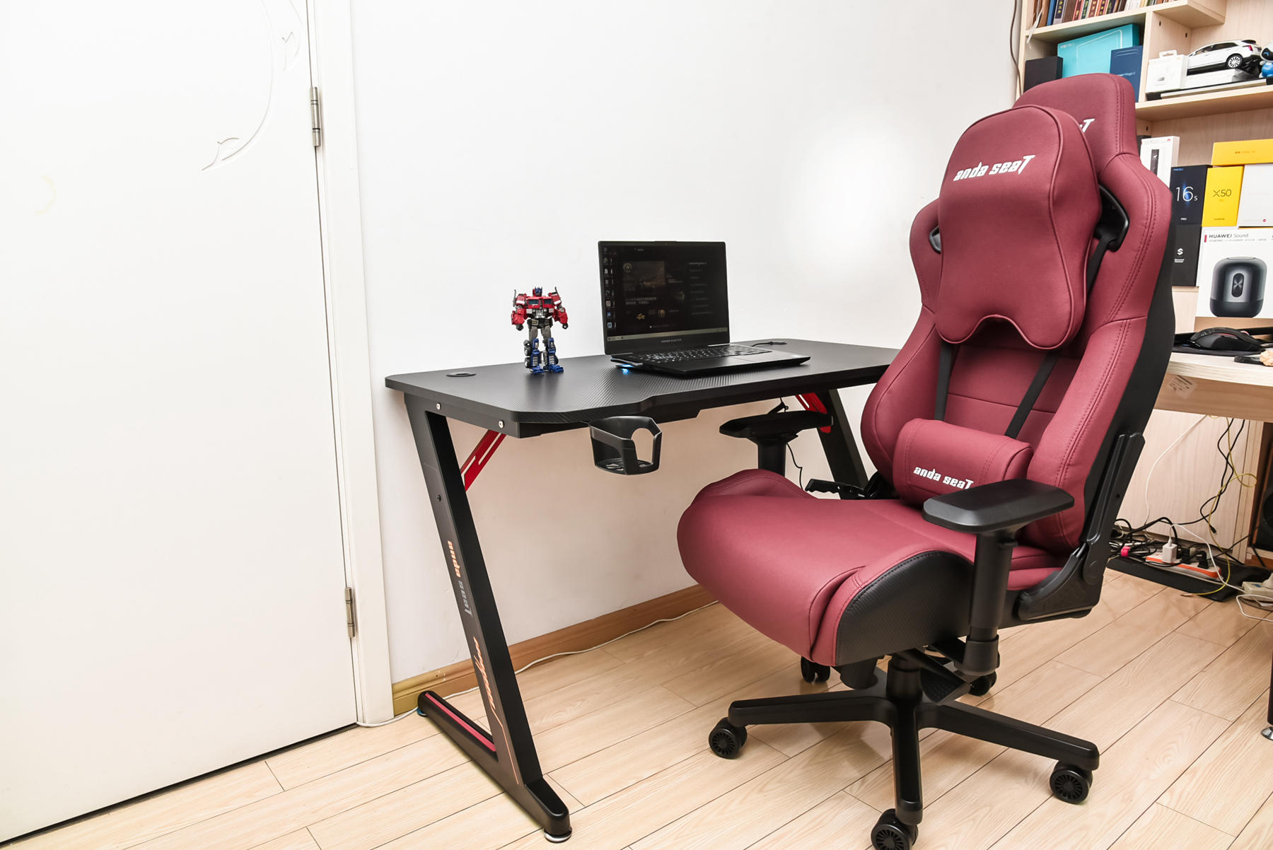 首先是这个安德斯特这个名字,不知道有多少人听过这个名字,这个品牌可是电竞椅领域里为数不多的几个大牌之一,赞助过不少电竞赛事。而我拿到的这套电竞桌椅套装,官方的名字有点略显中二,电竞桌叫机甲战士,电竞椅叫烈焰王座。