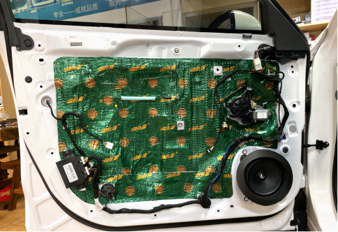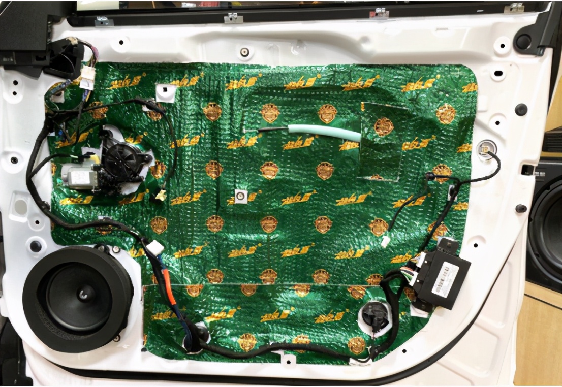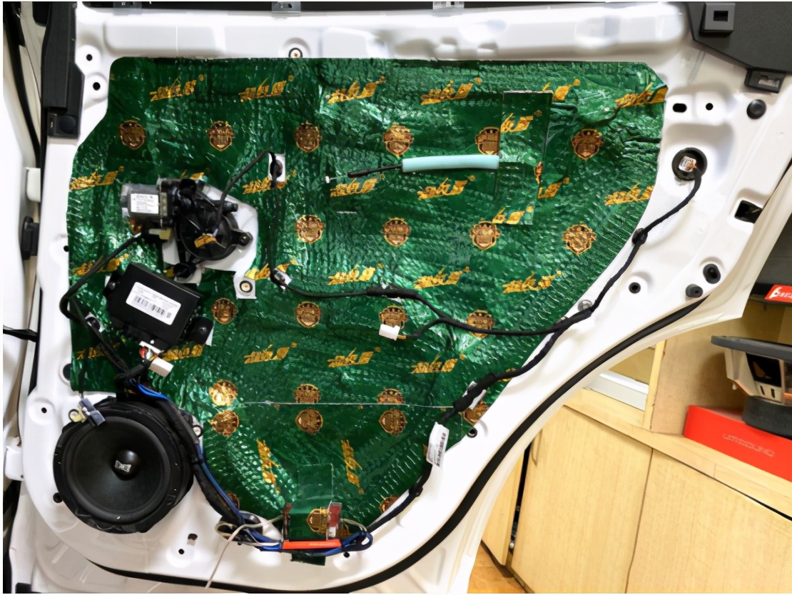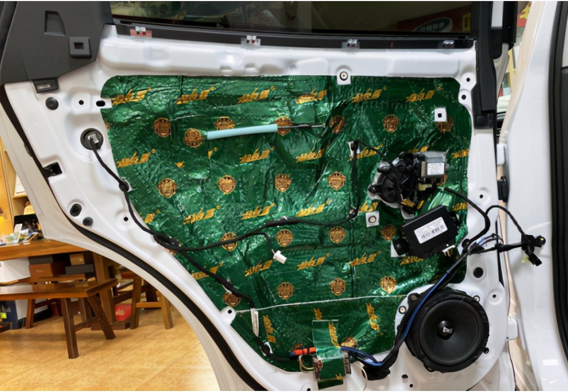 对后门板做隔音升级,将后声场喇叭安装在汽车原位
