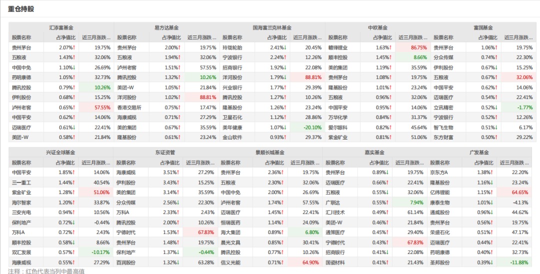 另外,从重仓股角度,根据各基金公司2020年年报,茅台还是机构最爱,但四家不爱“饮酒”的基金公司,国海富兰克林、中欧、兴证全球、东证资管,更吸引笔者注意。