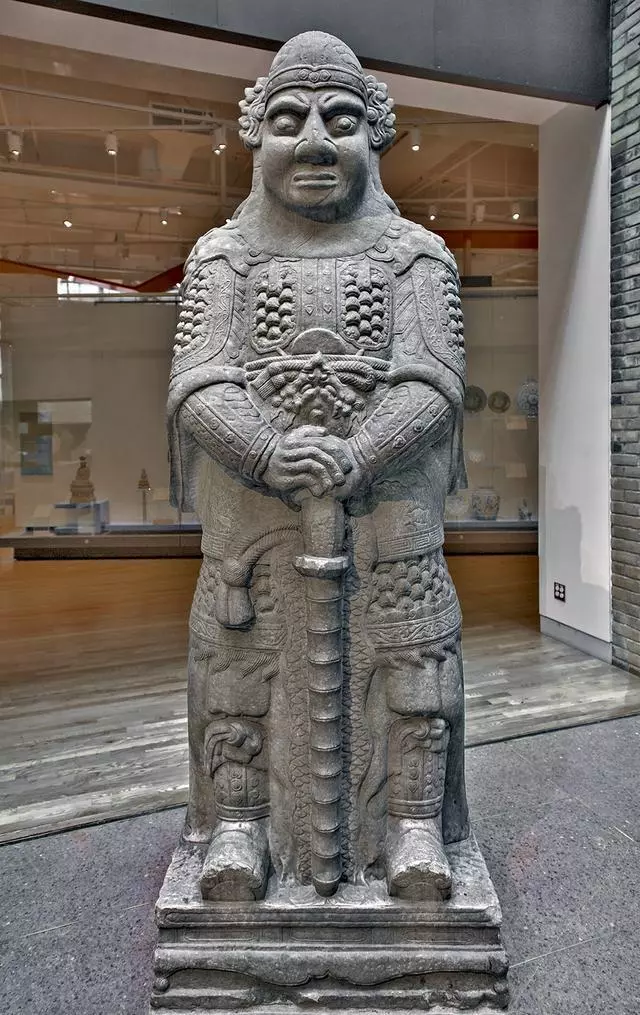 皇家安大略博物馆内有一座较为完整的中国明清墓葬,由石像生、雕刻精美的墓门,另还有墓门上两石雕、石五供和墓冢组成,墓冢有一米多高的石雕八角形裙围,八面雕满了民间传说故事,这么精美的墓是什么人的呢?边上的说明牌和电子解说器均显示墓的主人是明末清初名将——祖大寿。
