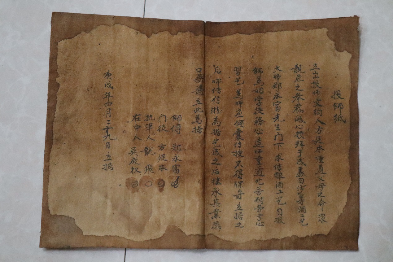 郑永福关门弟子方廷本拜师贴